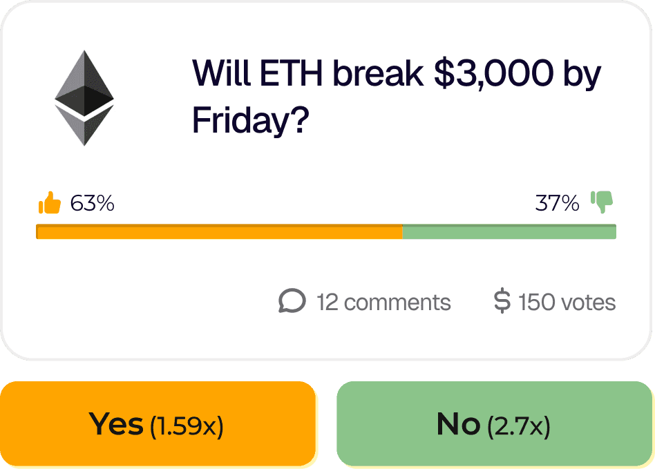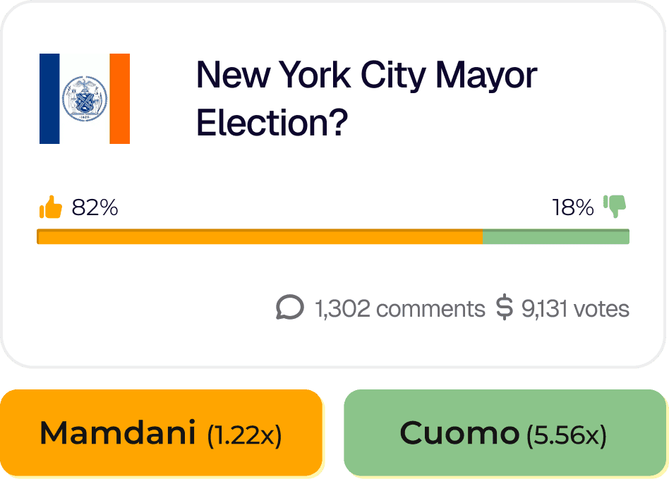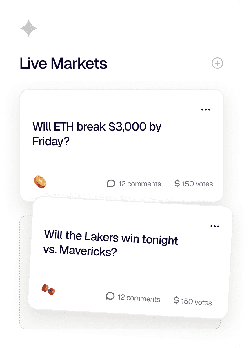 Spark debates, hot takes, and community predictions with questions that matter to your audience. You set the agenda, they show up to vote.